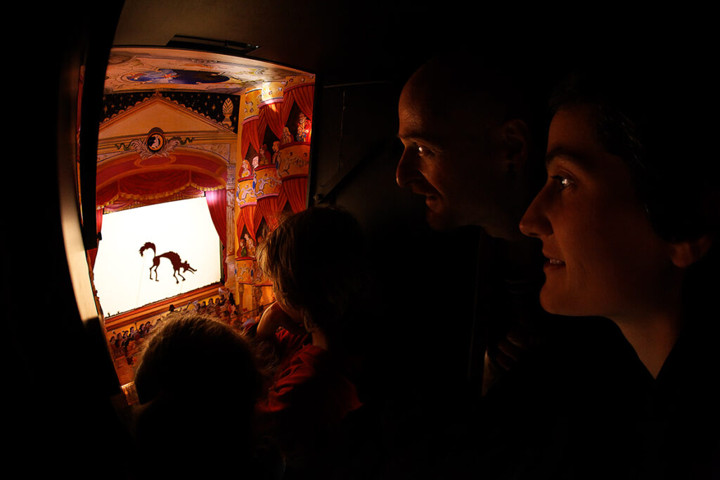 Le Cyclo Théâtre est l’aboutissement d’un vieux rêve, qui a vu le jour en décembre 2007. Construire un petit théâtre d’ombres mobile, facile à transporter, «passe-partout», de façon à pouvoir jouer aussi bien à l’intérieur qu’à l’extérieur, le jour comme la nuit… un monde à petite échelle, à la manière d’un théâtre en papier, où miniature rime avec poésie.