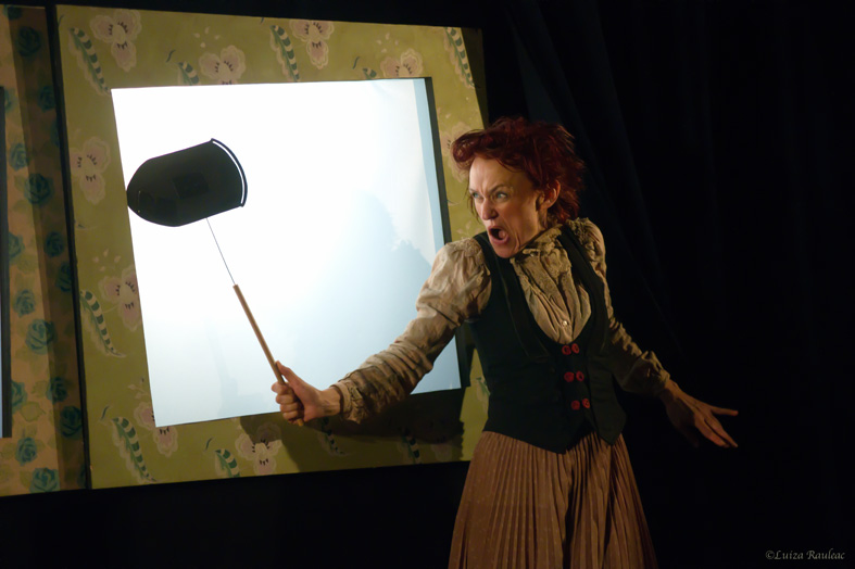 Partagée entre l’envie de raconter une histoire dramatique et le plaisir de boire du thé ( au grand désespoir du marionnettiste ! ) l’assistante va jusqu’à décrocher la lune pour réconforter la créature !